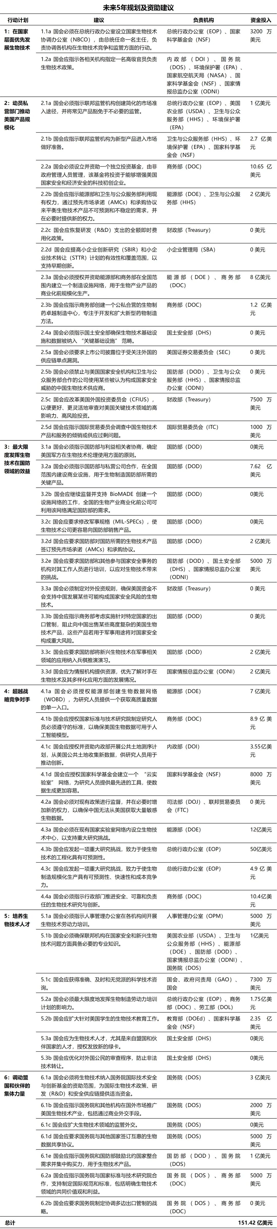 一是设立国家生物技术协调办公室(NBCO),隶属于总统行政办公室 (EOP),负责制定国家生物技术战略、整合资源并协调跨部门合作;