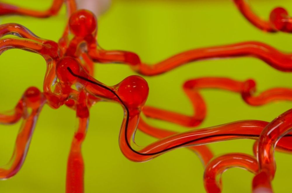 如今这个软体机器人已经在人体脑血管的硅胶模型上得到验证,研究人员使用一块大磁铁,让导丝穿针引线般精确到达了病灶区域。