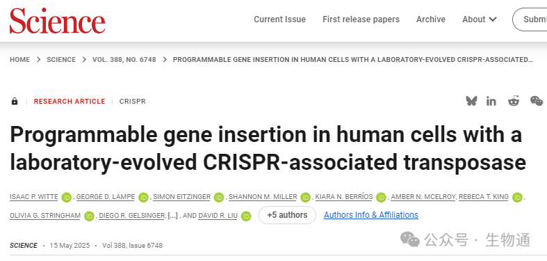 最新版本编辑器利用细菌中发现的复杂酶系统,可被编程以适合基因治疗的效率将完整基因(或多个基因)插入人类基因组特定位置。该编辑器的详细信息发表在5月15日《科学》杂志的论文中。