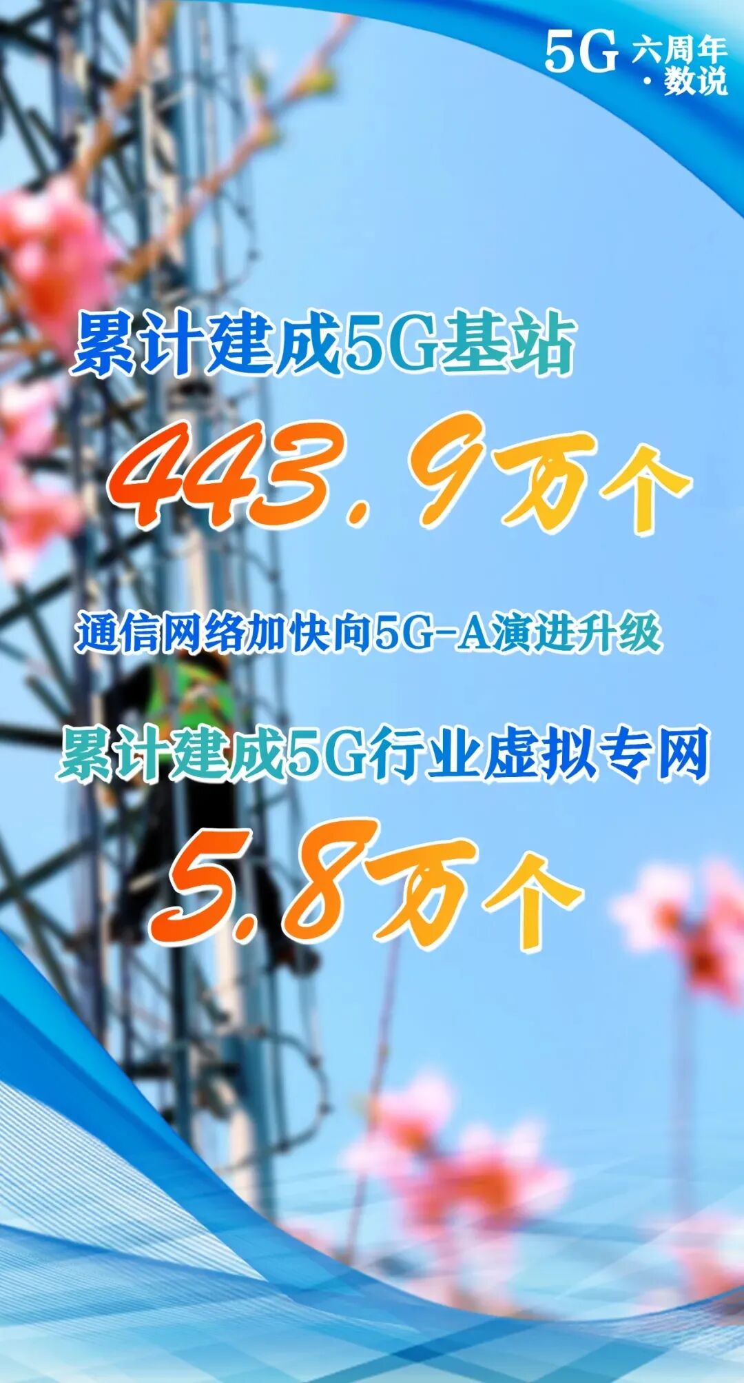 5G基站总数达443.9万个,实现“乡乡通5G”,行政村通5G比例达90%;移动通信网络加快向5G-A演进升级,300多个城市部署5G-A网络。