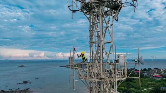 信息通信业以“逢山开路、遇海架桥”的无畏魄力,念好5G“山海经”。通信人在福清小麦岛海岛基站上作业,将通信网络的触角延伸到城市乡村的每个角落。