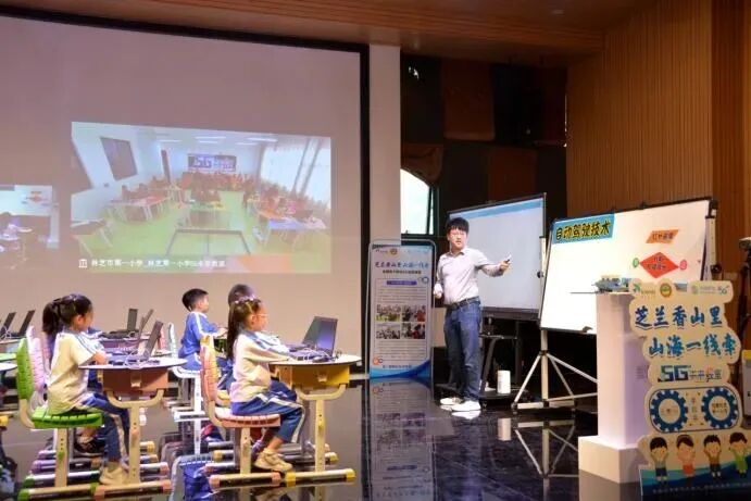 借助“5G+未来教室”课堂直播教学,远在西藏林芝市第一小学的师生们和深圳香山里小学师生们同上一堂课、同奏一首曲、共唱一首歌。