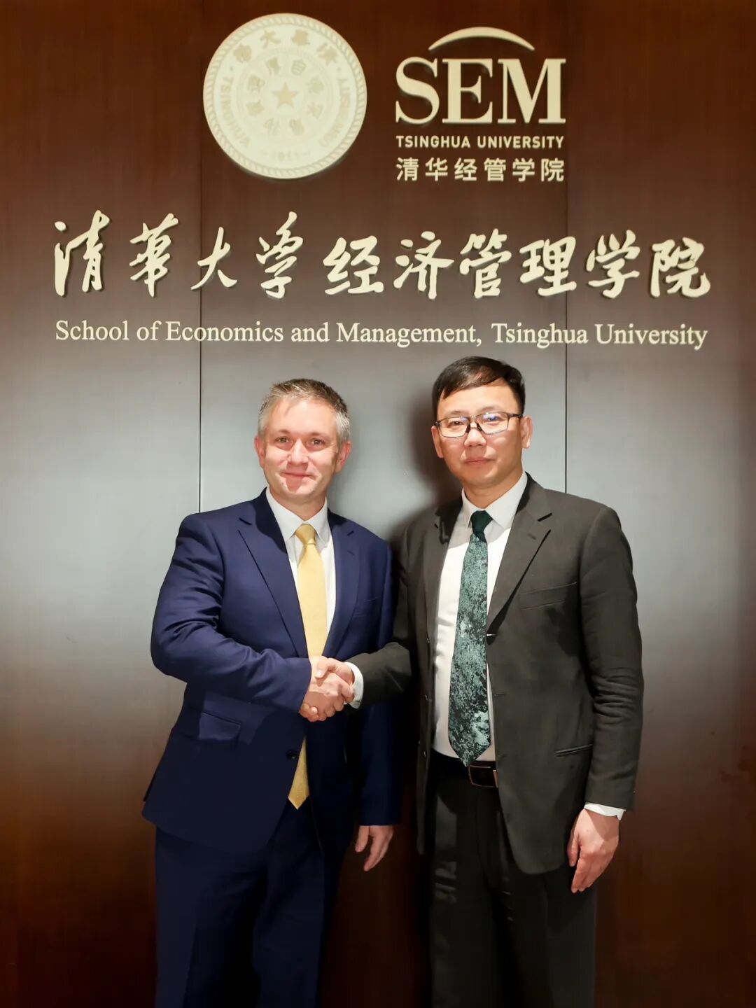 Arm战略与中国副总裁Philip Stanbury-Jones(左)和清华大学经济管理学院副院长何平(右)签署产学研合作协议