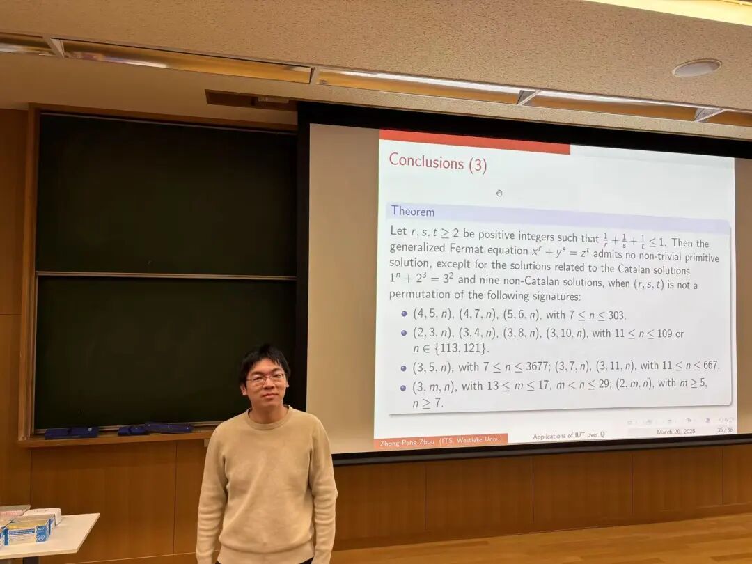 今年3月,周忠鹏受邀前往日本京都,在国际会议上作了40分钟的学术报告。报告非常顺利,多位国际知名数学家发来祝贺,如美国哥伦比亚大学教授多里安·戈德菲尔德、德国哥廷根大学教授普雷达·米哈列斯库,等等。