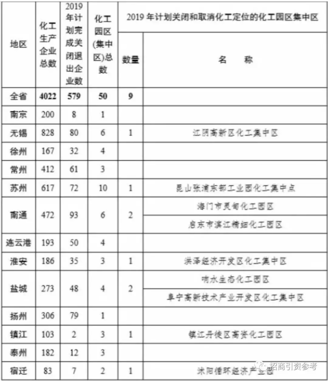 全省共排查出列入整治范围的化工生产企业4022家,计划关闭退出1431家,停产整改267家、限期整改1302家、异地迁建77家、整治提升945家。2019年全省计划关闭退出579家,计划关闭和取消化工定位的化工园区(集中区)9个。
