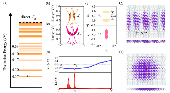 其次,它有局域价带平带,这意味着电子在价带顶部运动的速度极慢,就像空穴发生了“堵车”一样。而这使得电子和空穴之间的吸引力变得更强。