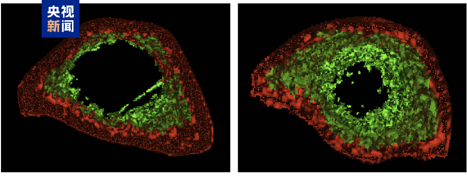 ▲SRC治疗有效逆转老年猴骨质疏松:对照组(左)、SRC处理组(右)